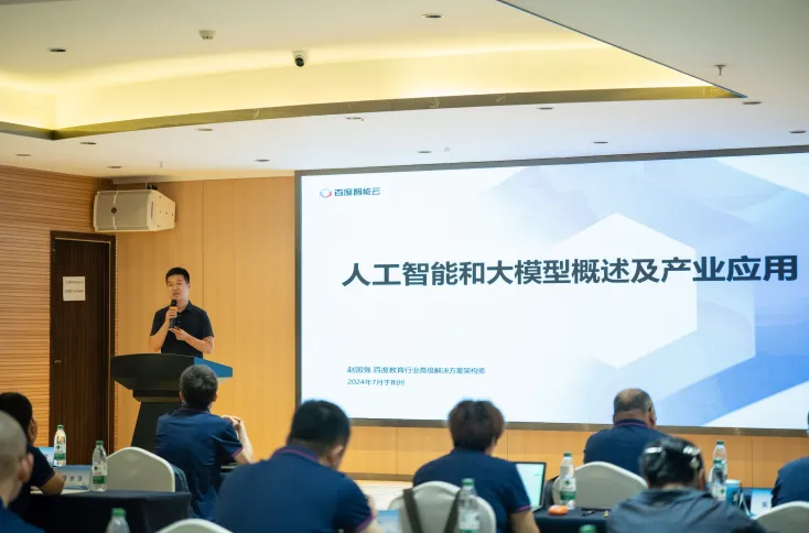 培训期间,来自行业顶尖的专家顾问为参训教师带来了精彩纷呈的课程。百度智能云的赵国强深入介绍了百度智能云AI教育解决方案及自动驾驶行业实践,为教师们打开了AI技术应用的新视野。武东锟老师讲解了大模型时代的学习范式、小模型开发深度学习基础与模型训练、大模型应用开发综合实践,极大地激发了教师们的学习兴趣与创造力。